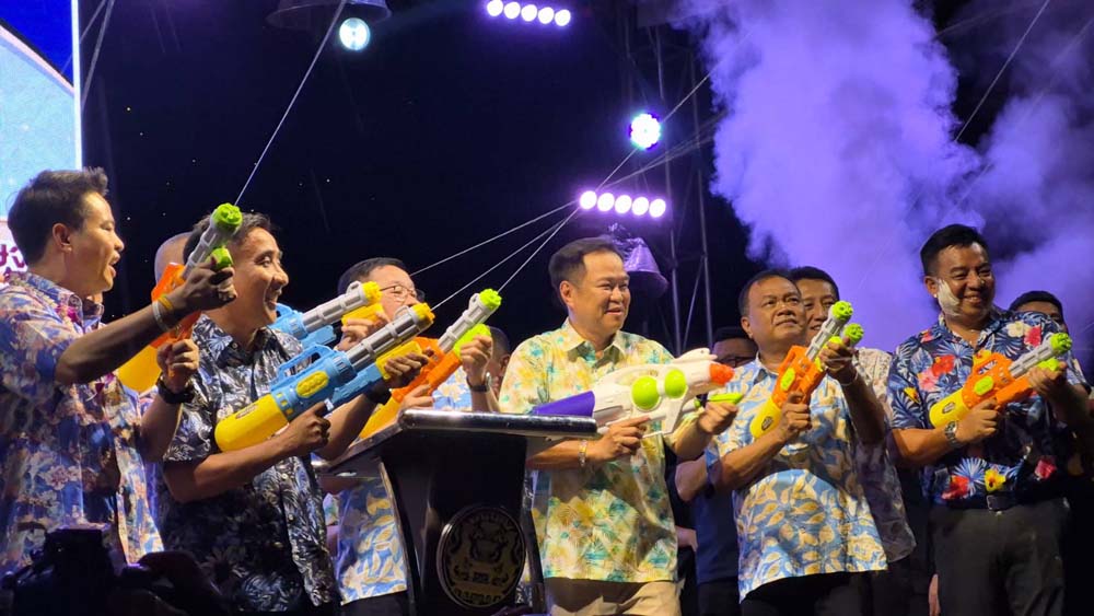 นายอนุทิน กล่าวว่า กราบขอบคุณพี่น้องทุกท่านวันนี้เป็นวันไหลขอให้พี่น้องสนุกสนานกันอย่างเต็มที่ พวกตนไม่มีอะไร วันนี้มาร่วมเป็นเพื่อน มาสนุกกับพ่อแม่พี่น้อง เพราะถือว่ามีบุญคุณ ตนกลับมาจากนราธิวาสมีความเครียดเต็มหัว พอมาเจอพี่น้องชาวชุมพรริทฝั่งน้ำตรงนี้ ก็มีความสุขถึงแม้ว่าจะเป็นชั่วคราวก็ตาม