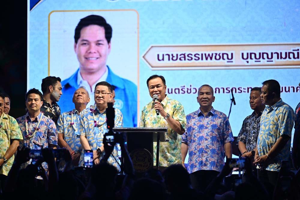 นายอนุทิน กล่าวว่า วันนี้พวกเรามากันครบเพื่อมาพบกับพ่อแม่พี่น้องชาวชุมพร ชาวประจวบคีรีขันธ์ และพี่น้องคนไทยที่อยู่ในที่นี้