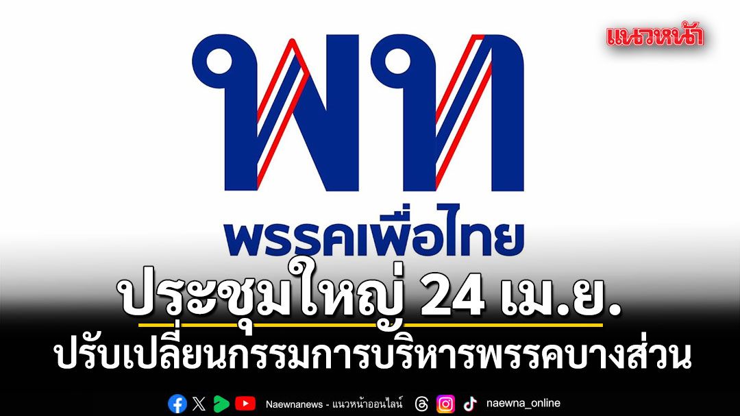 เพื่อไทยเตรียมประชุมใหญ่สามัญ 24 เม.ย.นี้ ปรับเปลี่ยนกรรมการบริหารพรรคบางส่วน