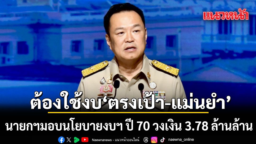 นายกฯ มอบนโยบายงบปี70 วงเงิน 3.788 ล้านล้าน ย้ำทุกบาททุกสตางค์ต้องเกิดประโยชน์สูงสุดตรงเป้า-แม่นยำตอบโจทย์นโยบาย 10 พลัส ยันปรับลดงบไม่ตอบโจทย์-ไม่จำเป็น วางกฎเหล็กงบปี 70 เพิ่มขึ้นไม่เกินร้อยละ 20 ของบปี 69 ยันรบ. ยึดหลัก 3 ประการในการทำงาน กำชับเตรียมความพร้อมอาวุธยุทโธปกรณ์ให้พร้อมไม่ให้ฝ่ายตรงข้ามรุกรานปท.ไทยเมื่อไหร่ก็ได้