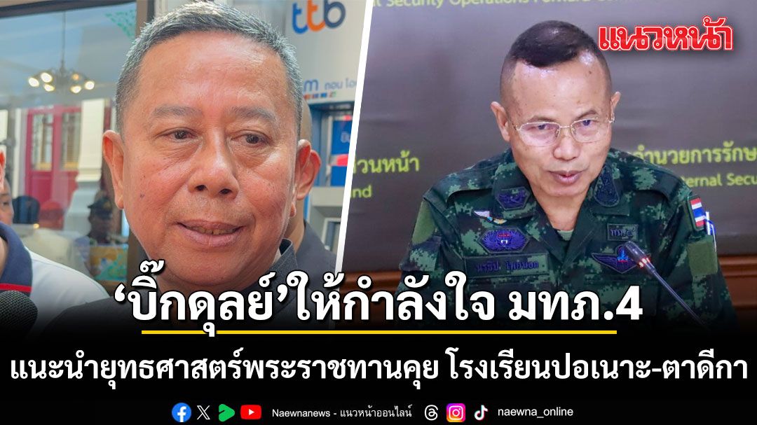 ”บิ๊กดุลย์“ ให้กำลังใจ “แม่ทัพภาคที่ 4“ เป็นคนตั้งใจ อยู่อีสานด้วยกันมาทั้งชีวิต เผยได้แนะนำให้นำยุทธศาสตร์พระราชทาน ไปคุยโรงเรียน “ปอเนาะ - ตาดีกา”ทำความเข้าใจ หวังสร้างความเชื่อมั่นพัฒนาพื้นที่ร่วมกัน