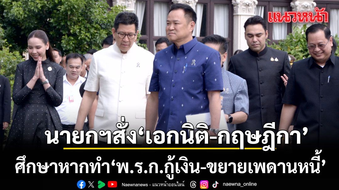 "นายกฯ" สั่ง “เอกนิติ-กฤษฎีกา” ศึกษารายละเอียดหากทำ พ.ร.ก.กู้เงิน-ขยายเพดานหนี้สาธารณะ เผย ยังไม่ได้ตัดสินใจกู้หรือไม่ แต่เตรียมไว้ก่อน หากเกิดวิกฤติ ทำได้ทันที กำชับเข้มตรวจคุณสมบัติ "ที่ปรึกษาของ รัฐมนตรี"