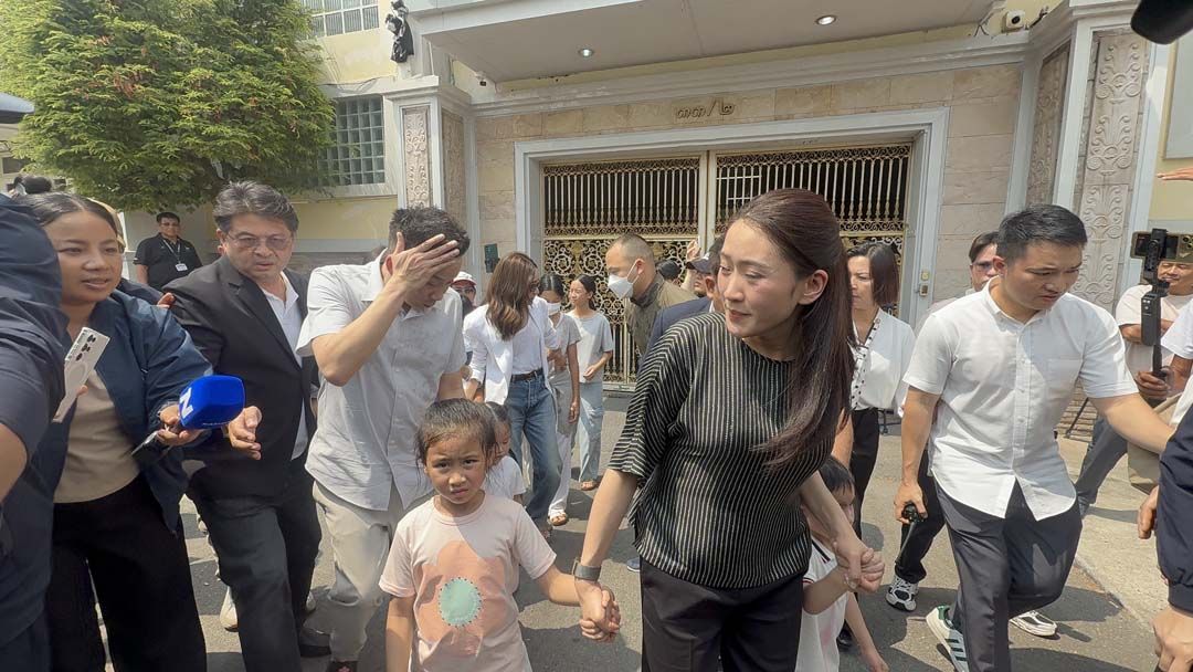 พร้อมกับ นายวิญญัติ ชาติมนตรี ทนายความ ซึ่งการเข้าเยี่ยมครั้งนี้มีเพียงบุตรและหลานตามรายชื่อที่ลงทะเบียนไว้ทั้งสิ้น 10 คน ทั้งนี้ สังเกตว่าก่อนเดินทางเข้าไปในเรือนจำนั้น น.ส.แพทองธาร ได้ถือกระดาษมีลักษณะคล้ายกับจดหมายมาด้วย คาดว่าจะนำไปให้นายทักษิณขณะเข้าเยี่ยม