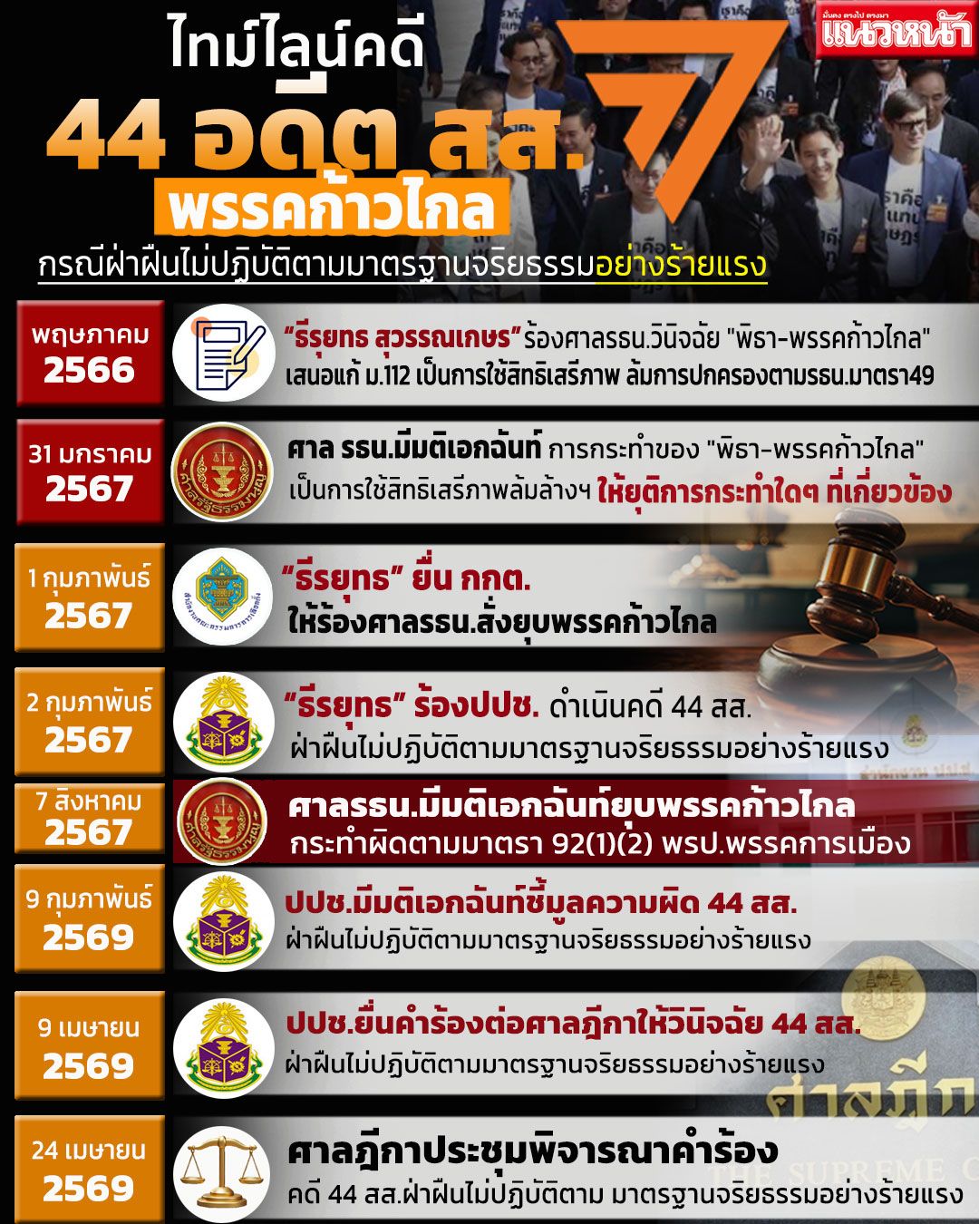 ต่อมาในวันที่ 9 กุมภาพันธ์ 2569 ผ่านมาถึง 2 ปี ป.ป.ช. มีมติเป็นเอกฉันท์ ชี้มูลความผิดอดีต สส.ก้าวไกล รวม 44 คน ฝ่าฝืนมาตรฐานจริยธรรมร้ายแรง กรณีเสนอร่าง พ.ร.บ. แก้ไขเพิ่มเติมกฎหมายอาญามาตรา 112 จากนั้นในวันที่ 9 เมษายน 2569 ป.ป.ช. ได้ยื่นคำร้องต่อศาลฎีกา เป็นคดีหมายเลขดำที่ คมจ 1/2569