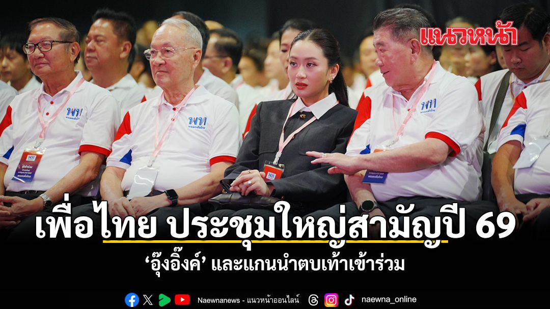 วันที่ 24 เม.ย. 2569 ที่พรรคเพื่อไทย มีการประชุมใหญ่สามัญประจำปี 2569 โดยมีนายจุลพันธ์ อมรวิวัฒน์ หัวหน้าพรรคเพื่อไทย ทำหน้าที่ประธานที่ประชุม นายประเสริฐ จันทรวงทอง เลขาธิการพรรคเพื่อไทย ทำหน้าที่เลขานุการการประชุม และนายจักรพงษ์ แสงมณี รองหัวหน้าพรรค ร่วมดำเนินการประชุม มีแกนนำพรรคเข้าร่วม อาทิ น.ส.แพทองธาร ชินวัตร อดีตนายกรัฐมนตรี และหัวหน้าครอบครัวเพื่อไทย นายภูมิธรรม เวชยชัย นางมนพร เจริญศรี นายชูศักดิ์ ศิรินิล นายวิสุทธิ์ ไชยณรุณ น.ส.สุดาวรรณ หวังศุภกิจโกศล กรรมการบริหารพรรค แกนนำพรรค สส. และ สมาชิกพรรค ร่วมประชุม มีผู้ลงชื่อเข้าร่วมประชุมเป็นองค์ประชุมใหญ่สามัญประจำปี 2569 พรรคเพื่อไทย รวมจำนวน 264 คน ครบถ้วนตามที่กฎหมายและข้อบังคับพรรคกำหนด