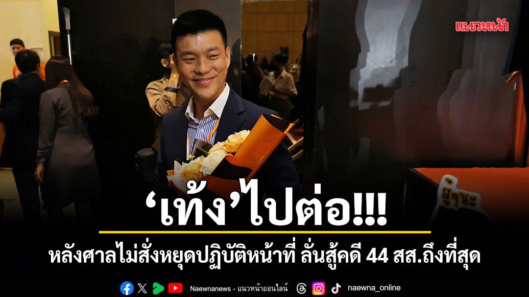 "เท้ง"ประกาศเดินหน้าทำหน้าที่ สส.ต่อไป หลังศาลฎีการับคำร้อง ป.ป.ช.คดี 44 สส.พรรคก้าวไกล แต่ไม่สั่งหยุดปฏิบัติหน้าที่