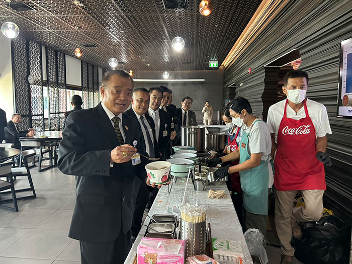 จากนั้น พล.อ.เกรียงไกร ได้กินข้าวที่ซื้อโชว์ พร้อมบอกว่าราคา 60 บาท ถือว่าโอเค เพราะเรากินเพื่ออยู่ อร่อยดี "หรอยจังฮู้" พร้อมยกนิ้วโป้งให้