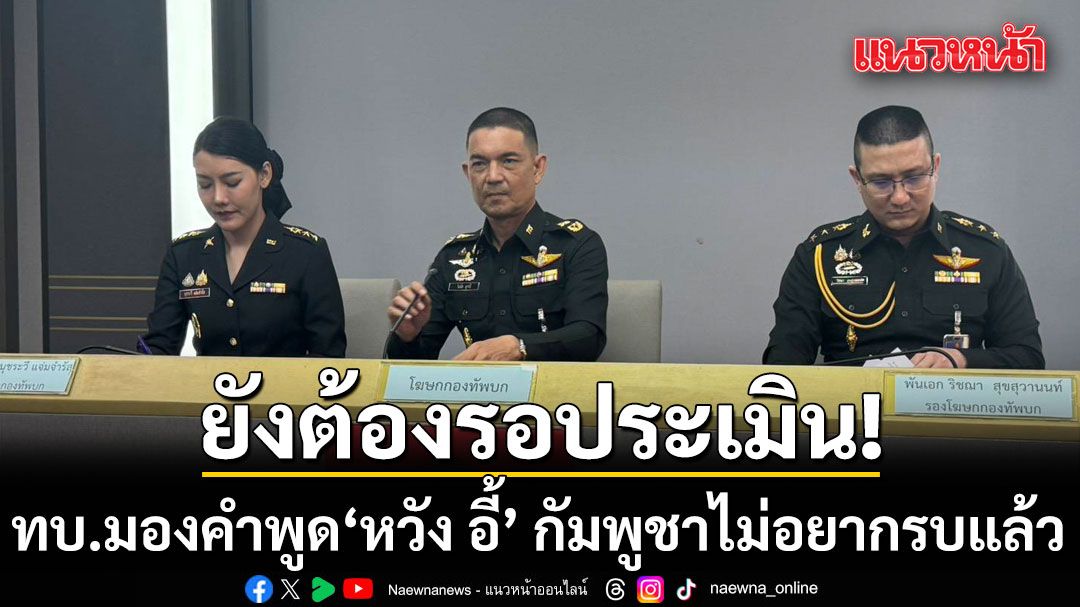 ผบ.ทบ.ย้ำ เกาะติดชายแดน เข้มข้อมูลการข่าว ด้าน โฆษก ทบ. สรุปภาพรวม ฝ่ายไทย ยังยึดมั่นถ้อยแถลง มองคำพูด "หวังอี้" กัมพูชาไม่อยากรบแล้ว ยังต้องรอประเมิน แม้ท่าทีปัจจุบันไม่คุกคาม ย้ำ ติดตามเงินรัฐบาลเยียวยา 10 ล้าน ปะทะรอบ2