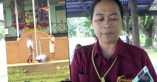 โรงเรียนบ้านลำหาด ต.ทัพทัน อ.สังขะ จ.สุรินทร์ ซึ่งก่อนหน้านี้ นักเรียนมีอาการป่วยแล้วไปรักษาที่ โรงพยาบาลสังขะ แพทย์วินิจฉัยว่าแพ้อาหาร พอครูทราบเรื่องว่าเด็กมาพูดทำให้เขาเสียหายเกี่ยวกับอาหารกลางวัน จึงเรียกให้เด็กนักเรียนหญิงคนดังกล่าวมากราบขอขมาบริเวณหน้าเสาธงต่อหน้านักเรียนหลายร้อยคน ระหว่างนั้น มีนักเรียนชายซึ่งทราบในเวลาต่อมาว่าเป็นพี่ชายของเธอขึ้นไปร่วมเจรจาด้วย
