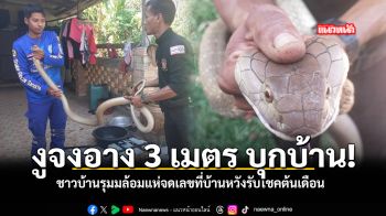 งูจงอาง 3 เมตร บุกบ้าน ชาวบ้านรุมมล้อมแห่จดจดเลขที่บ้านหวังรับโชคต้นเดือน