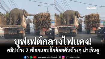 บุฟเฟต์กลางไฟแดง! คลิปช้าง 2 เชือกแอบจิ๊กอ้อยคันข้างๆ น่าเอ็นดู