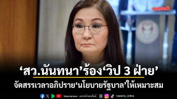 สว.นันทนา ร้องวิป 3 ฝ่าย จัดสรรเวลาอภิปรายนโยบายรัฐบาลให้เหมาะสม