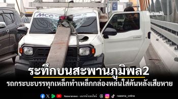 ระทึกบนสะพานภูมิพล2! รถกระบะบรรทุกเหล็กทำเหล็กกล่องหล่นใส่หน้ารถคันหลังเสียหาย