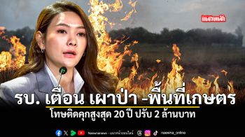 รบ เตือน เผาป่า พื้นที่เกษตร โทษติดคุกสูงสุด 20 ปี ปรับ 2 ล้านบาท