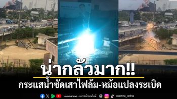 น่ากลัวมาก!! เปิดคลิปนาทีกระแสน้ำท่วมเชี่ยวแรง ทำเสาไฟล้ม-หม้อแปลงระเบิด