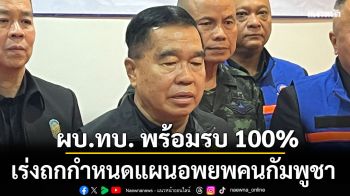 บิ๊กเล็ก ยัน ผบ.ทบ. พร้อมรบ 100% เร่งถกแผนอพยพคนกัมพูชา ออกจากบ้านหนองจาน
