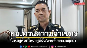 ทบ.ทวนความจำเพื่อนบ้าน ย้ำกัมพูชา 'ใครอยู่พื้นที่ไหนอยู่ที่นั่น' ตามข้อตกลงหยุดยิง