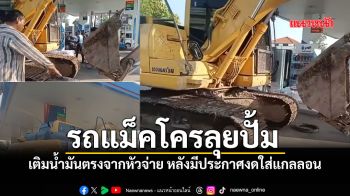 โซเชียลฮือฮา เมื่องดเติมใส่ถัง รถแม็คโครคันยักษ์เลยบุกปั้ม เติมให้เห็นกันจะๆ