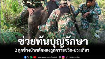 บุญรักษา! จนท.ช่วยทันเวลา 2 ลูกช้างพลัดหลง 'ตัวแรกถูกควายเผือกขวิด-อีกตัวติดบ่วง'