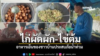 ไก่ผัดผัก-ไข่ต้ม! หน่วยงานรัฐส่งวัตถุดิบถึงเต็นท์ ชาวบ้านช่วยปรุงอาหารมื้อเย็นอิ่มท้อง