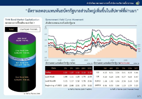 พันธบัตรรัฐบาลไทยอายุ 10 ปี ให้ดอกเบี้ยเพียง ~2%