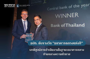 “รางวัลนี้เป็นเครื่องยืนยันถึงความพยายามร่วมกันของทีมงานธนาคารแห่งประเทศไทยทุกคน ในปีที่เต็มไปด้วยความไม่แน่นอนทางเศรษฐกิจระดับโลกและความท้าทายภายในประเทศพวกเราทำงานอย่างต่อเนื่อง เพื่อสนับสนุนเศรษฐกิจ พร้อมทั้งมุ่งมั่นในการรักษาเสถียรภาพราคาและเสถียรภาพระบบการเงินในระยะยาว ตลอดจนการเตรียมความพร้อมของภาคการเงินเพื่อรับมือกับความท้าทายในอนาคต” - ดร.เศรษฐพุฒิกล่าวในการรับรางวัล