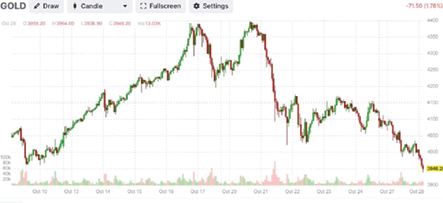 4. นายจิตติ ตั้งสิทธิ์ภักดี นายกสมาคมค้าทองคำ เปิดเผยว่า ในรอบสัปดาห์นี้ตั้งแต่วันที่ 27-30 ตุลาคม 2568 ราคาทองคำจะยังมีการผันผวนค่อนข้างแรง เนื่องจากมีปัจจัยที่ต้องจับตา คือ การเจรจาสงครามการค้าระหว่างสหรัฐและจีน ในวันที่ 31 ตุลาคม 2568 ระหว่างประธานาธิบดีโดนัลด์ทรัมป์ ของสหรัฐ และประธานาธิบดีสี จิ้นผิง ของจีน ซึ่งถือเป็นจุดสำคัญในการคลี่คลายความตึงเครียดทางการค้าระหว่างสองประเทศ