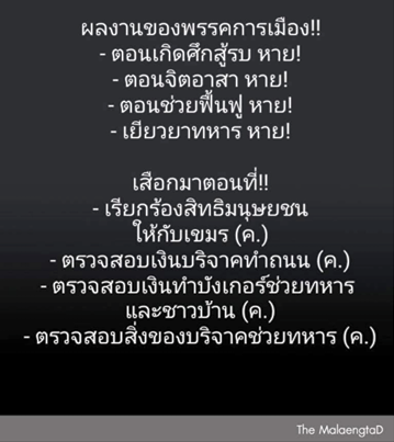 “โกงเงินทหารผ่านศึก โกงโควตาหวยคนพิการ โกงเงินนักกีฬา โกงเงินเกษตรกร โกงเงินชลประทาน โกงชื่อสมาชิกพรรค หลอกคนผ่านสแกมเมอร์ทุกรูปแบบ ศูนย์รวมอยู่ที่เดียว แต่ใหญ่คับฟ้า นายกยังไม่กล้าแตะ แล้วฝ่ายค้านทำไร โห แหกกันจะโดนสั่งเก็บกันอยู่แล้วพี่จ๋า”