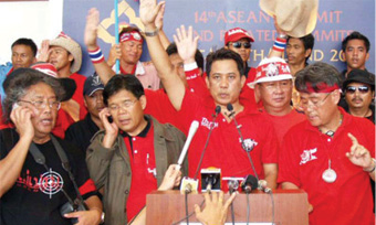 คุณทักษิณต้องการให้พวกเสื้อแดงกลับไปประท้วงขัดขวางการประชุมสุดยอดอาเซียนต่อไปโดยตะโกนร้องว่า