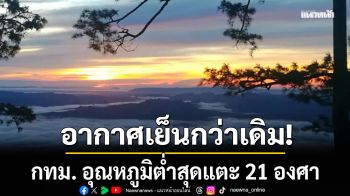 สภาพอากาศพรุ่งนี้! กรมอุตุฯเตือนอากาศเย็นกว่าเดิม กทม. อุณหภูมิต่ำสุดแตะ 21 องศา