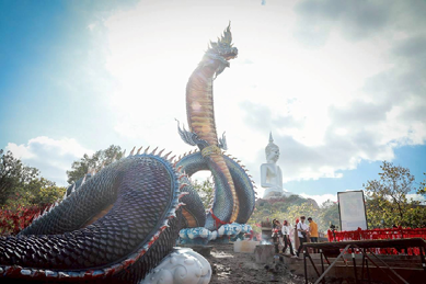 มีการนำผ้าแดงที่เขียนชื่อตัวเองไปผูกไว้ที่ต้นไม้รอบๆ พญานาค เพื่อความเป็นสิริมงคลแก่ตนเองได้ด้วย