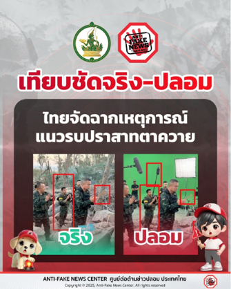 1. กรณีข้อมูลเท็จว่า ภาพที่ฝ่ายไทยจัดฉากเหตุการณ์แนวรบปราสาทตาควายนั้น Anti-Fake News Center Thailand ตรวจสอบแล้ว