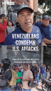 ชาวเวเนซุเอลาจำนวนมากที่รวมตัวกันประท้วงสหรัฐ ระบุว่า “สหรัฐอเมริกาไม่ได้สนใจเสรีภาพหรือประชาธิปไตย แต่สนใจน้ำมันของเราต่างหาก”