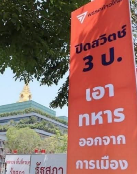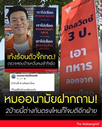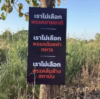 “ข้อความ “ไม่เลือกพรรคด้อยค่าทหาร” - ไม่เลือกพรรคขายชาติ” - “ไม่เลือกพรรคล้มล้างสถาบัน”