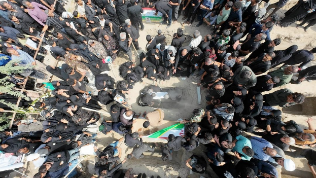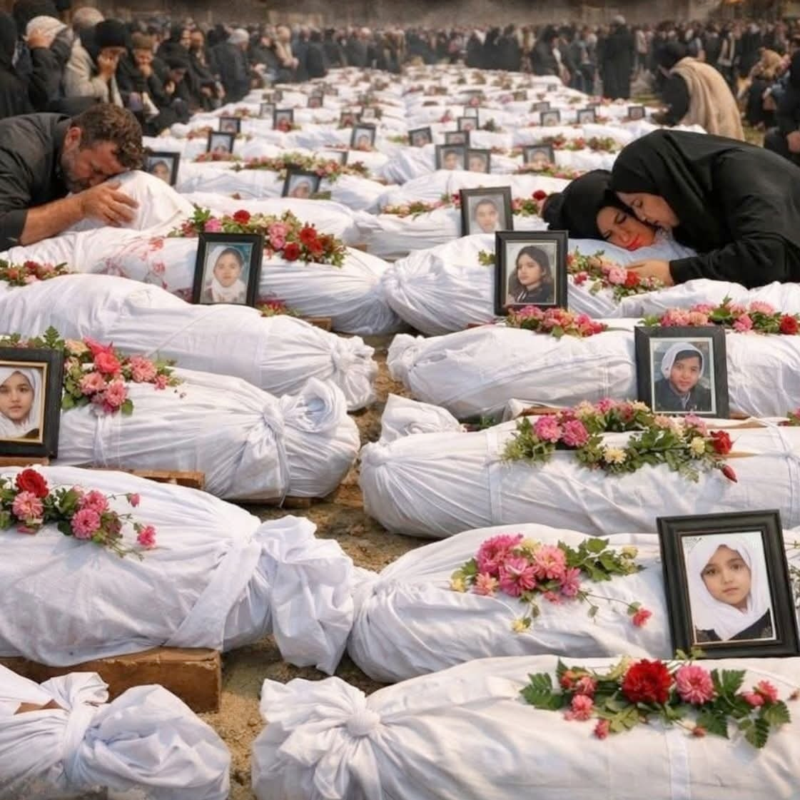 พิธีศพเพื่อส่งดวงวิญญาณของเหล่านักเรียนที่เสียชีวิตจากโรงเรียนฮายัต ตัยยิเบะห์(Hayat Tayyibeh) เมืองมีนาบ ประเทศอิหร่าน