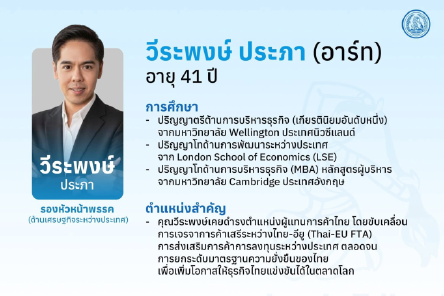 วีระพงษ์ ประภา อดีตตัวแทนการค้าไทยประจำสหภาพยุโรป ซึ่งได้รับการทาบทามให้เป็นคณะตัวแทนการค้าไทย (Thailand Trade Representatives: TTR)…”