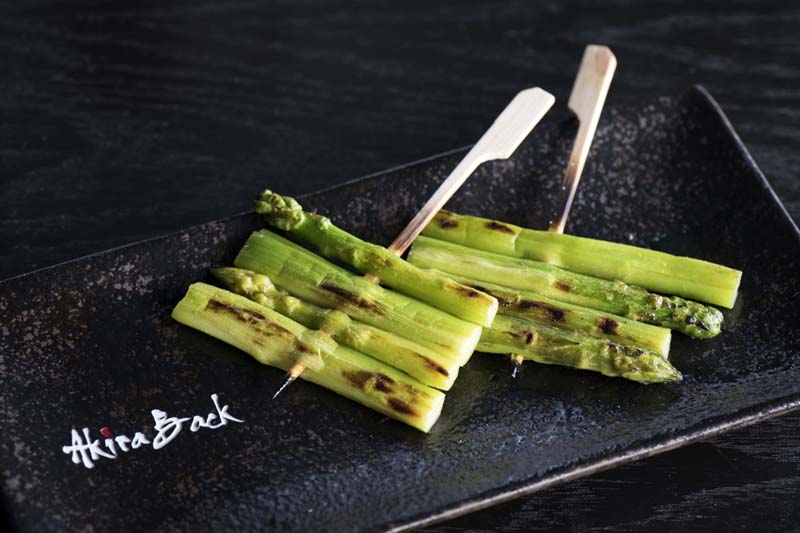 เมนูผักย่าง (Grilled Vegetables) ก็มีให้อร่อยด้วยเช่นกัน เริ่มด้วย พริก ชิชิโตะย่างกับเกลือทะเลมัลดอน หน่อไม้ฝรั่งย่างเสริมรสด้วยน้ำมันตะไคร้ และสาหร่ายคอมบุ หรือข้าวโพดย่างกับซอสเนยกระเทียมดำโรยหน้าด้วยชีสพาร์เมซาน รสชาติโดดเด่นเกินใคร ยิ่งได้ลิ้มรสอาหารคู่กับสาเกคัดสรรพิเศษของ อาคีราแบค เอง ที่ผลิตมาจากโรงกลั่น นานบุ บิจิน ในเมืองอิวาเตะทางตอนใต้ของญี่ปุ่น ยิ่งทำให้มื้ออร่อยสมบูรณ์แบบยิ่งขึ้น