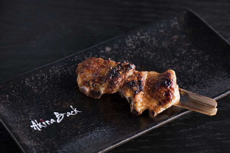 เชฟอาคีราขึ้นชื่อในการนำความทรงจำในวัยเด็กและช่วงชีวิตที่เติบโตมาในหลากหลายวัฒนธรรม มาสะท้อนออกมาในรูปแบบอาหาร ความสดใหม่สวยงามสไตล์ญี่ปุ่น-เกาหลี และความสนุกสนาน ตามแบบฉบับอเมริกัน จึงเห็นได้ชัดว่า “โรบาต้า กริลล์” อาหารเมนูใหม่นี้ เริ่มต้นด้วยประเภทไก่ย่างยากิโทริ ตำรับคลาสสิค(Classic Chicken Yakitori) อาหารเสียบไม้ย่างพื้นเพญี่ปุ่นแท้ ๆ อาทิ สะโพกไก่ย่างร้อนๆหมักใบชิโสะและมะนาวกลิ่นหอมละมุน ตับไก่ย่างซอสทาเระและพริกไทยสีชมพู หัวใจไก่ย่างกับกุยช่ายและขิง ปีกไก่ย่างเติมรสด้วยซอสเนยศรีราชา และพริกป่นชิจิมิ หรือจะเลือกอร่อยกับ ซึคุเนะ เนื้อไก่สับย่างซอสหวานทาเระเสิร์ฟคู่กับไข่ออนเซน