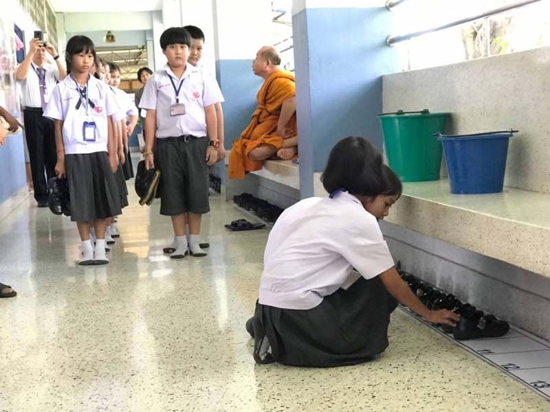 ทั้งนี้ มีทั้งหมดจำนวน 6 บทฝึก ประกอบด้วย กิจวัตรการเดินอย่างถูกหลักวิชา เพื่อพัฒนานิสัยมีความสุภาพ รู้กาลเทศะ, วิธีการถอดและวางรองเท้า เพื่อพัฒนานิสัยรักความเป็นระเบียบ และมีจิตสาธารณะ, การแสดงความเคารพปฏิสันถารครู เพื่อพัฒนาจิตสำนึกเรื่องพระคุณครู, การทำความสะอาดโต๊ะเก้าอี้ เพื่อพัฒนานิสัยรักความสะอาด, การจัดระเบียบสิ่งของเครื่องใช้ เพื่อพัฒนานิสัยรักการจัดระเบียบ, การนั่งสมาธิ เพื่อพัฒนานิสัยรักการนั่งสมาธิ และการสวดมนต์ เพื่อฝึกสมาธิผ่านการสวดมนต์