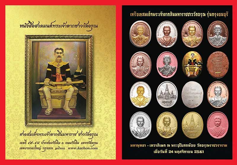 1.จัดสร้างหนังสือสวดมนต์พระเจ้าตากชาววัดอรุณ ไว้แจกฟรีโดยมิมีมูลค่าใดๆ แก่ท่านผู้ศรัทธาที่เดินทางมากราบไหว้ขอพรในพระองค์ท่าน เพื่อความเป็นศิริมงคลแก่ชีวิตและครอบครัว ณ ศาลสมเด็จพระเจ้าตากสินมหาราชชาววัดอรุณ ปากซอยวังเดิม 3 ถนนวังเดิม แขวงวัดอรุณ เขตบางกอกใหญ่ กรุงเทพฯ