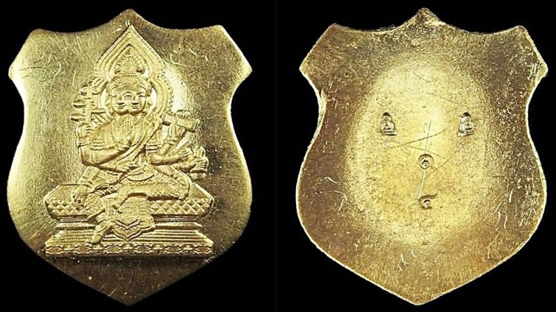 2. เหรียญโล่ห์เล็กท้าวสหัมบดีพรหม เนื้อทองคำ จำนวนการสร้าง 19 เหรียญมี ตอกโค้ดและ Run Number กำกับ น้ำหนัก 3.4 กรัม ราคาจอง 19,999 บาท