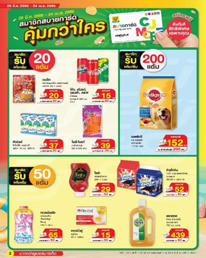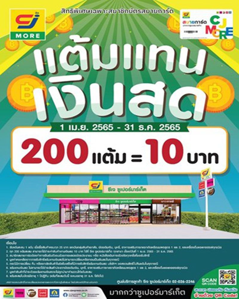 นอกจากนี้ซีเจ มอร์ ยังเพิ่มความคุ้มค่าให้กับสมาชิกสบายการ์ดสามารถสะสมแต้มได้ง่ายและเร็วขึ้น ด้วยสินค้าแต้มพิเศษที่คัดสรรมาโดยเฉพาะเพียงลูกค้าซื้อสินค้าที่กำหนดก็สามารถรับแต้มเพิ่มทันทีตั้งแต่ 20 แต้ม, 50 แต้ม ไปจนถึง200 แต้มซึ่งสามารถนำมาแลกเป็นส่วนลดซื้อสินค้าได้อีกต่อหนึ่ง ภายใต้สิทธิประโยชน์ยอดฮิต “แต้มแทนเงินสด” โดยทุกๆ 200 แต้ม สามารถแลกส่วนลดทันที10 บาทตั้งแต่วันนี้ –31 ธันวาคม 2565 โดยสมาชิกสบายการ์ดสามารถตรวจสอบแต้มสะสมได้ที่ https://www.cjexpress.co.th/member/checkpoint