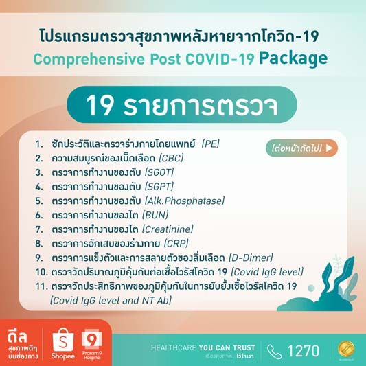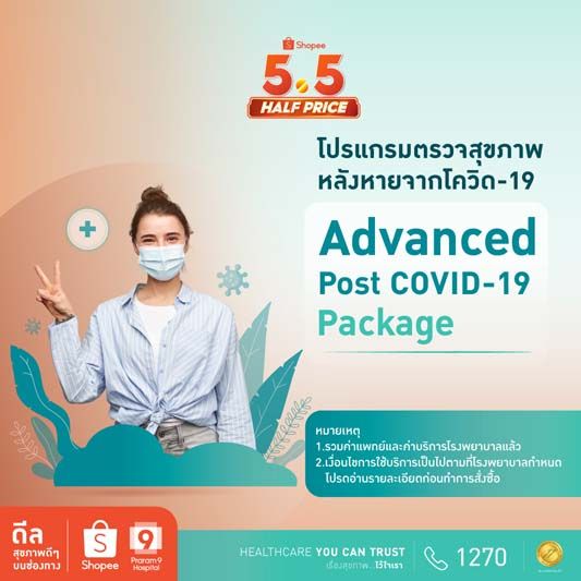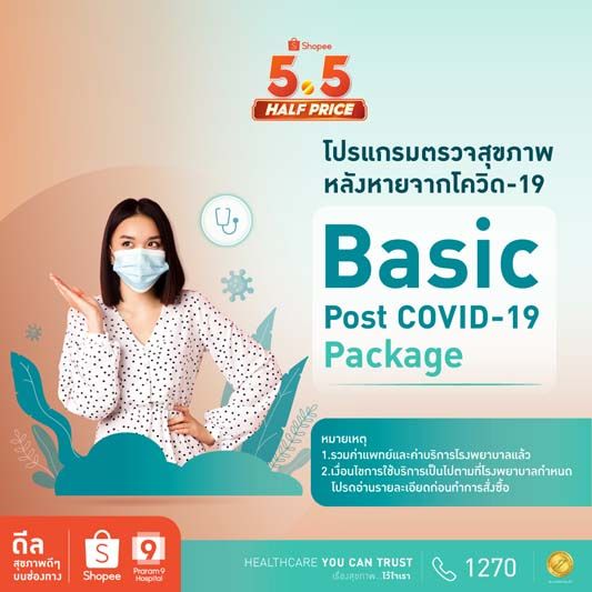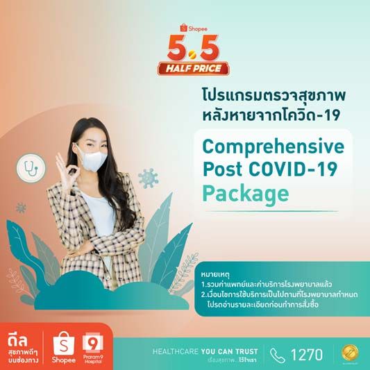 ใครเคยเป็น โควิด-19 แล้วยกมือขึ้น!!...โรงพยาบาลพระรามเก้า ร่วมมือกับ ช้อปปี้ ผู้นำแพลตฟอร์มอีคอมเมิร์ซในเอเชียตะวันออกเฉียงใต้และไต้หวัน #ยืน 1 ตัวจริงในการเป็นแพลตฟอร์มช้อปปิ้งออนไลน์ จัดแคมเปญ Shopee 5.15 Mid Month Sale ชวนผู้ที่หายจากโควิด-19 มาเช็คความแข็งแรงของร่างกาย กับ โปรแกรมตรวจสุขภาพหลังหายจากโควิด-19 เพราะถึงแม้โควิดจะหายแต่ร่างกายยังไม่เต็ม 100 ในราคาสบายกระเป๋าเริ่มเพียง 2,500 บาท ประกอบไปด้วย