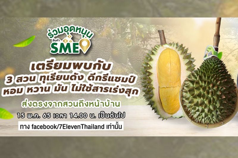 เข้าสู่เทศกาลทุเรียนแล้ว ผลไม้ยอดนิยมที่ใครหลายคนรอคอย ล่าสุดเซเว่น อีเลฟเว่น เอาใจคนรักทุเรียน จะจัดกิจกรรม Live จำหน่ายทุเรียนเมืองนนท์ดีกรีแชมป์ ที่มีให้เลือกช้อปทั้งหมอนทอง พวงมณี รวมถึงทุเรียนจากสวนดังเมืองระยองและนครนายก พร้อมเดินหน้าช่วยเกษตรกรสร้างรายได้ ขยายช่องทางจำหน่ายผ่าน Live สดบนเฟซบุ๊ก 7-ElevenThailand วันที่ 15 พฤษภาคมนี้