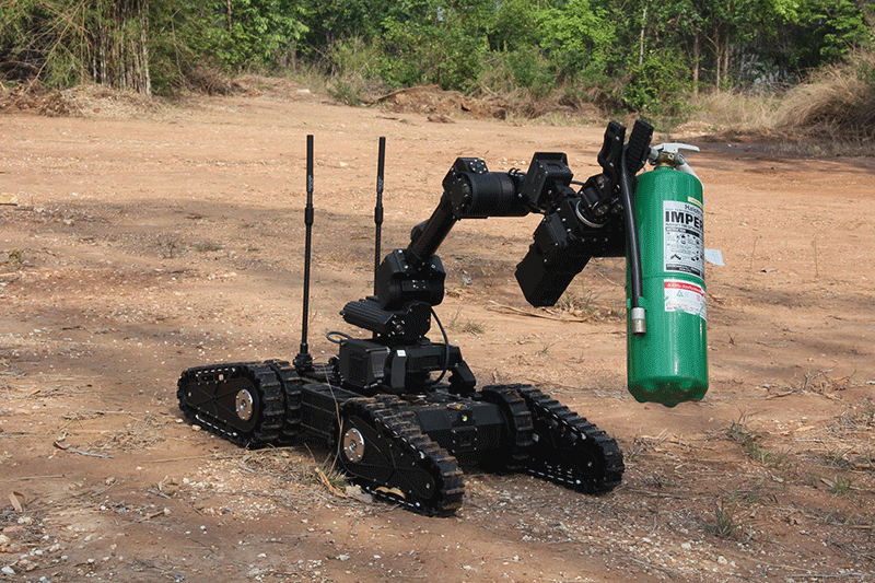 1. ต้นแบบหุ่นยนต์เก็บกู้วัตถุระเบิดขนาดเล็ก รุ่น D-EMPIR V.4 ภายใต้ความร่วมมือระหว่าง สถาบันเทคโนโลยีป้องกันประเทศ กับมหาวิทยาลัยเทคโนโลยีมหานคร