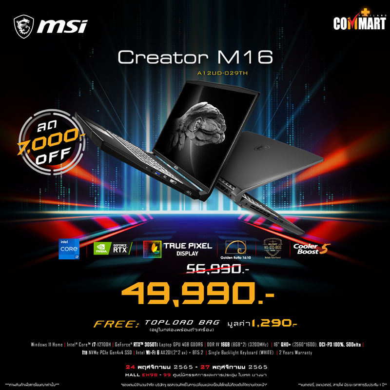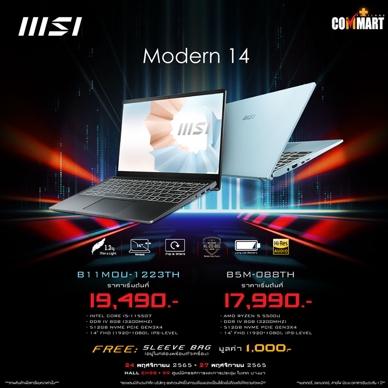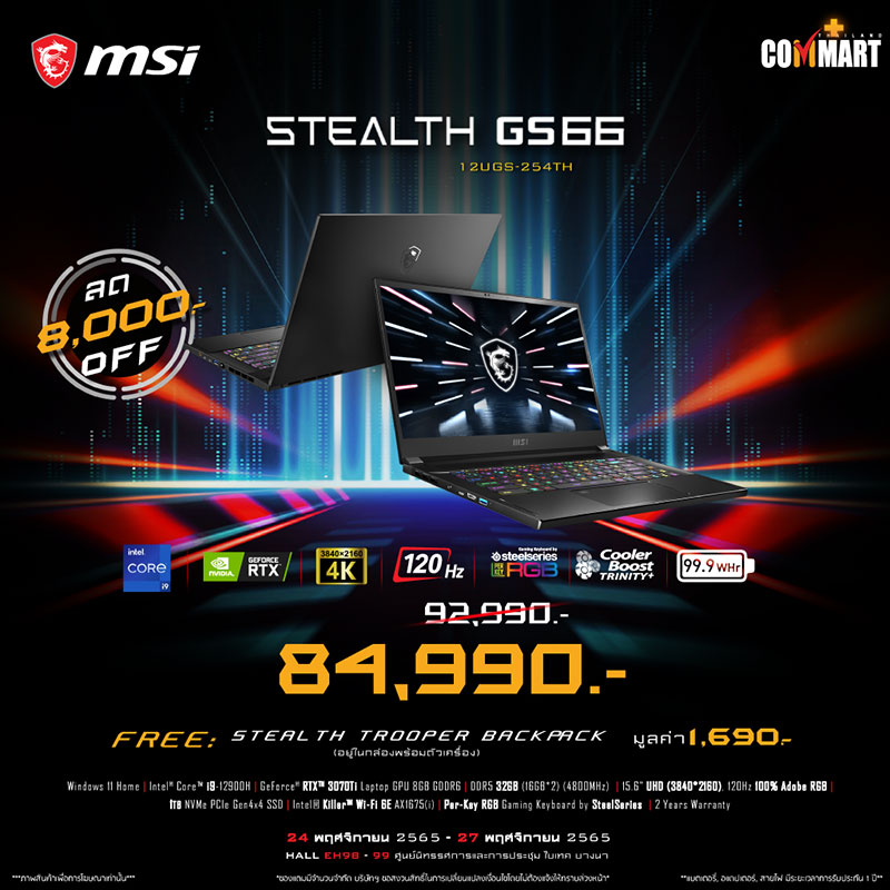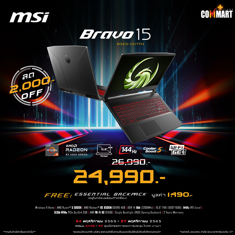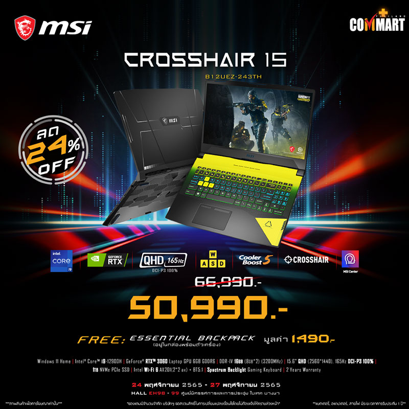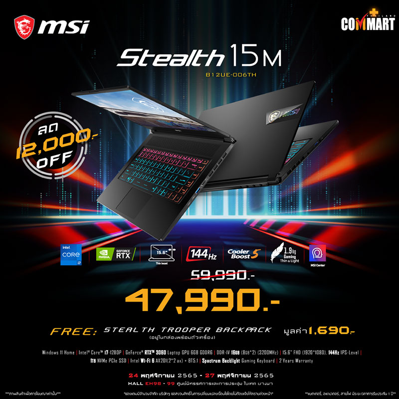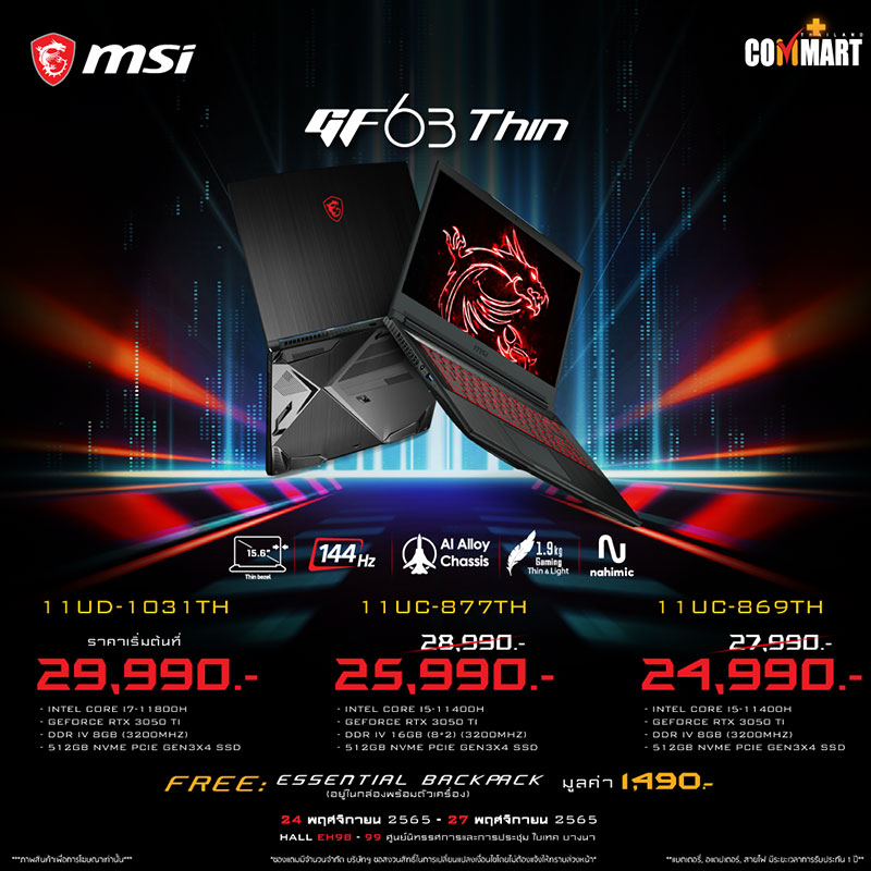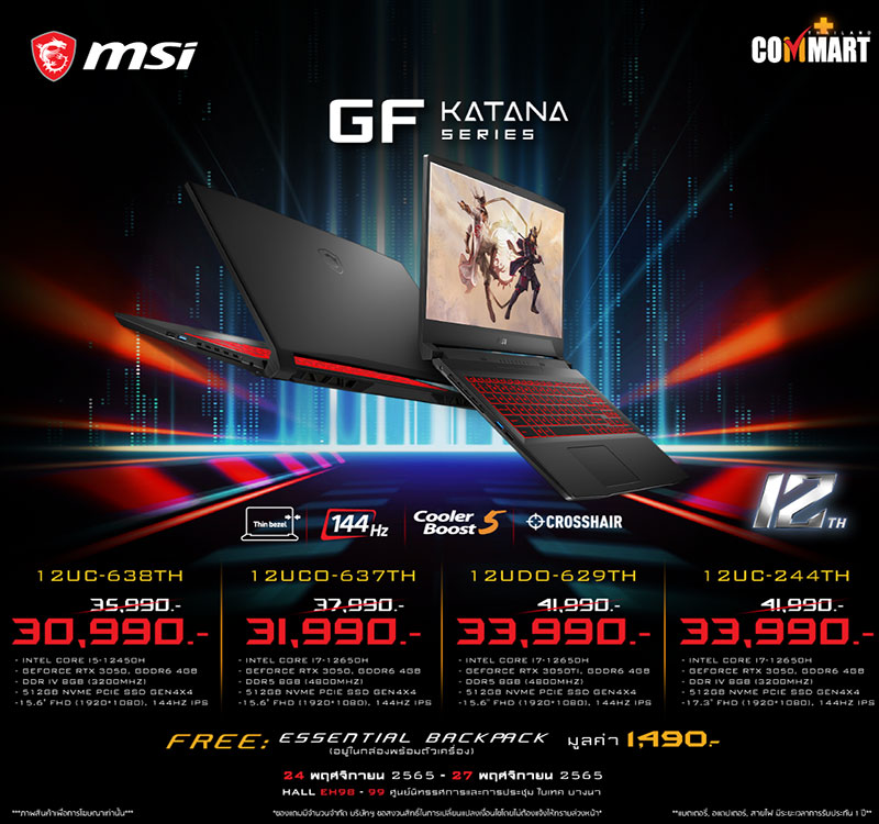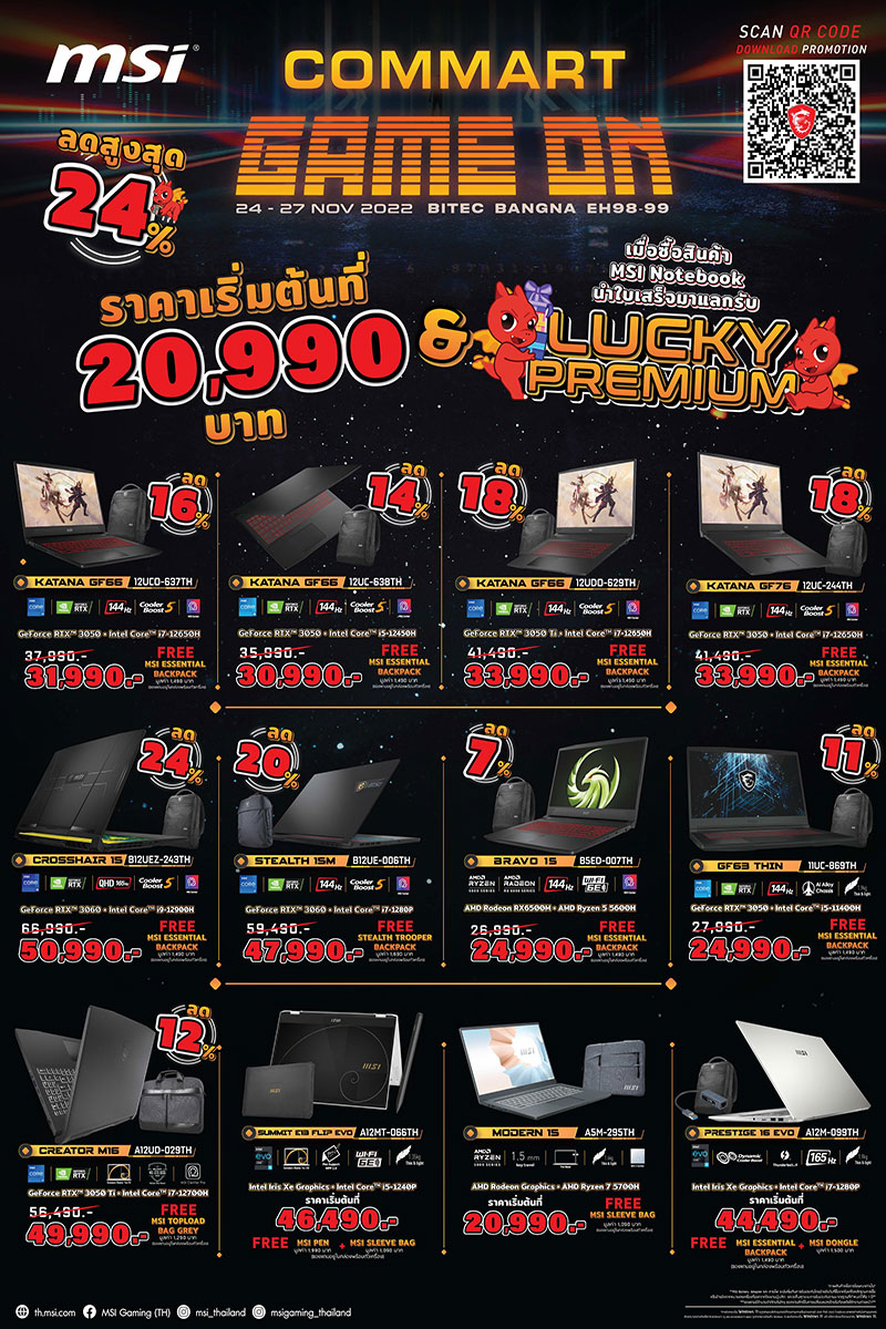 ยังพบกับพวกเรา MSI ได้ในโลเคชั่นเดิมอย่างบูธหมายเลข B12 ของงาน Commart Game on 2022 ฉลองสิ้นปี ตั้งแต่วันที่ 24 พฤศจิกายน 2565 – 27 พฤศจิกายน 2565 แล้วมาพบกัน!