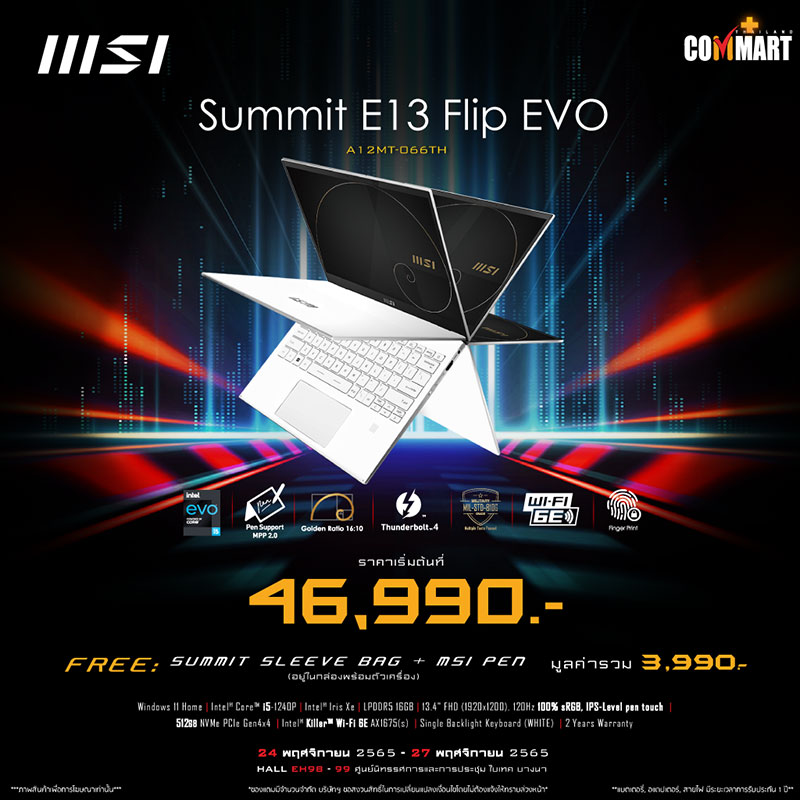ราคา 46,490 บาท | แถมฟรี Summit Sleeve Bag มูลค่า 1,000 บาท, MSI Pen มูลค่า 2,999 บาท