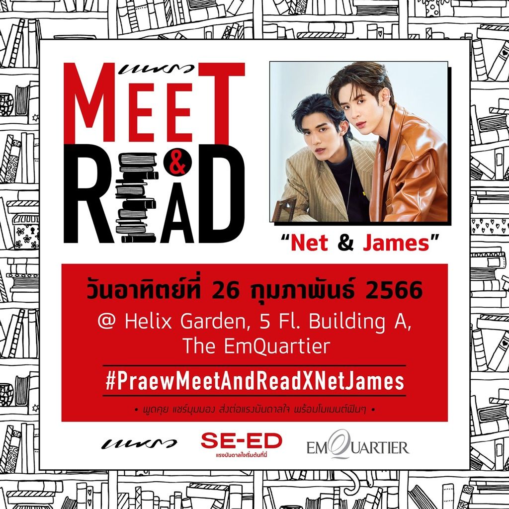 นิตยสารแพรว ในเครืออมรินทร์ กรุ๊ป ร่วมกับร้านหนังสือซีเอ็ด จัดกิจกรรม “แพรว Meet & Read” โดยครั้งนี้ 2 หนุ่มสุดฮอต เน็ต - สิรภพ มานิธิคุณ และ เจมส์ - ศุภมงคล วงศ์วิสุทธิ์ #PraewMeetandReadXNetJames ที่กำลังมีผลงานร่วมกัน “อย่าเล่นกับอนล Bed Friend Series” จะมาพบปะเหล่าแฟนคลับ และร่วมพูดคุย แชร์มุมมอง พร้อมส่งต่อแรงบันดาลใจจากการอ่าน ในวันที่ 26 ก.พ. นี้ เวลา 12.00 น. ณ Helix Garden ชั้น 5 Building A ศูนย์การค้าดิ เอ็มควอเทียร์