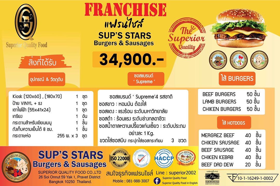 ด้าน สุภารัตน์ ในฐานะผู้นำเข้าเนื้อวัวเกรดพรีเมี่ยม กล่าวเสริมว่า ตอนนี้เรามีส่งออกไปประเทศลาวด้วย แต่ยังไม่ได้ส่งที่อื่น เพราะในประเทศยังผลิตไม่ค่อยพอ แต่เป้าหมายในอนาคตจะขยายตลาดไปต่างประเทศ เพราะตอนนี้ก็เดินทางไปดูตลาดที่ต่างประเทศไว้บ้างแล้ว จากนั้นได้ต่อยอดมาเป็นธุรกิจเฟรนไชส์ Burgers & Sausages แบรนด์ “Sup’s Stars” ซึ่งใช้เนื้อวัวคุณภาพดี เพื่อรองรับลูกค้ามุสลิมและนักท่องเที่ยวชาวอาหรับ ได้ทานเบอร์เกอร์อย่างมั่นใจว่าเป็นอาหารฮาลาล