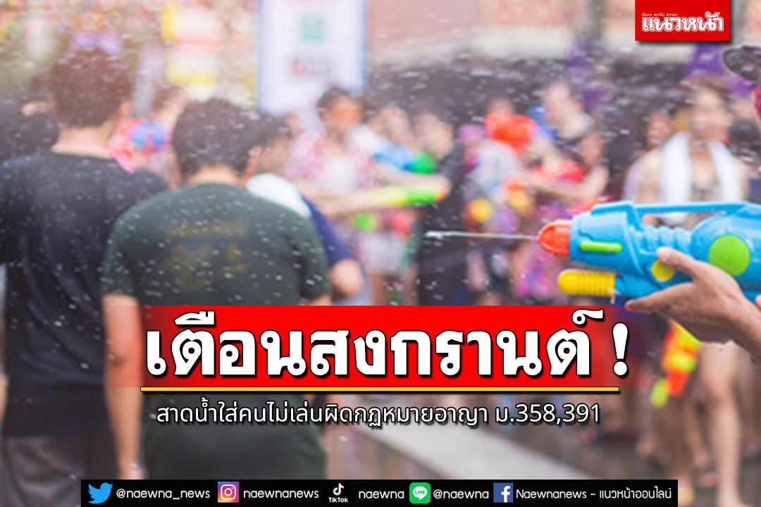 เตือนสงกรานต์ สาดน้ำใส่คนไม่เล่นผิดกฏหมายอาญา ม.358,391 โทษจำคุกไม่เกิน 1 เดือน หรือปรับไม่เกิน 1 หมื่นบาท หรือทั้งจำทั้งปรับ